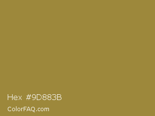 Hex #9d883b Color is a normal yellow color and the nearest color is Metallic Sunburst #9c7c38. Hex code #9d883b and RGB value is rgb(157,136,59). In RGB color space, this color is composed of 62% red, 53% green, 23% blue, In CMYK color space, this color is composed of 0% cyan, 13% magenta, 62% yellow , 38% black , In HSL color space, this color has a hue angle of 47° , 45% saturation and 42% lightness.