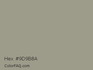 Hex #9d9b8a Color is a normal yellow color and the nearest color is Lemon Grass #9b9e8f. Hex code #9d9b8a and RGB value is rgb(157,155,138). In RGB color space, this color is composed of 62% red, 61% green, 54% blue, In CMYK color space, this color is composed of 0% cyan, 1% magenta, 12% yellow , 38% black , In HSL color space, this color has a hue angle of 54° , 9% saturation and 58% lightness.