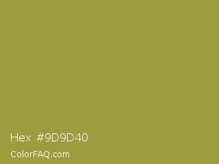 Hex #9d9d40 Color is a normal yellow color and the nearest color is Sycamore #908d39. Hex code #9d9d40 and RGB value is rgb(157,157,64). In RGB color space, this color is composed of 62% red, 62% green, 25% blue, In CMYK color space, this color is composed of 0% cyan, 0% magenta, 59% yellow , 38% black , In HSL color space, this color has a hue angle of 60° , 42% saturation and 43% lightness.