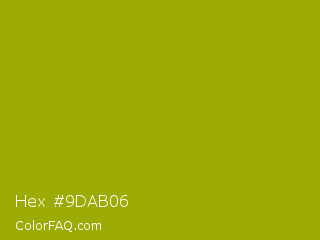 Hex #9dab06 Color is a normal yellow color and the nearest color is Apple Green #8db600. Hex code #9dab06 and RGB value is rgb(157,171,6). In RGB color space, this color is composed of 62% red, 67% green, 2% blue, In CMYK color space, this color is composed of 8% cyan, 0% magenta, 96% yellow , 33% black , In HSL color space, this color has a hue angle of 65° , 93% saturation and 35% lightness.