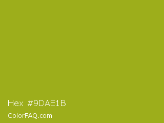 Hex #9dae1b Color is a normal yellow color and the nearest color is Citron #9fa91f. Hex code #9dae1b and RGB value is rgb(157,174,27). In RGB color space, this color is composed of 62% red, 68% green, 11% blue, In CMYK color space, this color is composed of 10% cyan, 0% magenta, 84% yellow , 32% black , In HSL color space, this color has a hue angle of 67° , 73% saturation and 39% lightness.