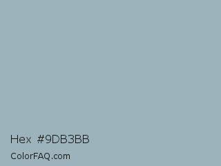 Hex #9db3bb Color is a light blue color and the nearest color is Gull Gray #9dacb7. Hex code #9db3bb and RGB value is rgb(157,179,187). In RGB color space, this color is composed of 62% red, 70% green, 73% blue, In CMYK color space, this color is composed of 16% cyan, 4% magenta, 0% yellow , 27% black , In HSL color space, this color has a hue angle of 196° , 18% saturation and 67% lightness.
