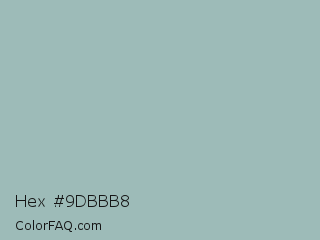 Hex #9dbbb8 Color is a light cyan color and the nearest color is Shadow Green #9ac2b8. Hex code #9dbbb8 and RGB value is rgb(157,187,184). In RGB color space, this color is composed of 62% red, 73% green, 72% blue, In CMYK color space, this color is composed of 16% cyan, 0% magenta, 2% yellow , 27% black , In HSL color space, this color has a hue angle of 174° , 18% saturation and 67% lightness.
