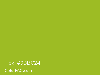 Hex #9dbc24 Color is a normal lime color and the nearest color is Citron #9fa91f. Hex code #9dbc24 and RGB value is rgb(157,188,36). In RGB color space, this color is composed of 62% red, 74% green, 14% blue, In CMYK color space, this color is composed of 16% cyan, 0% magenta, 81% yellow , 26% black , In HSL color space, this color has a hue angle of 72° , 68% saturation and 44% lightness.
