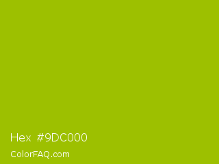 Hex #9dc000 Color is a normal lime color and the nearest color is Pistachio Green #9dc209. Hex code #9dc000 and RGB value is rgb(157,192,0). In RGB color space, this color is composed of 62% red, 75% green, 0% blue, In CMYK color space, this color is composed of 18% cyan, 0% magenta, 100% yellow , 25% black , In HSL color space, this color has a hue angle of 71° , 100% saturation and 38% lightness.