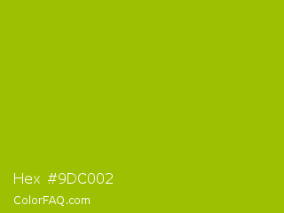Hex #9dc002 Color is a normal lime color and the nearest color is Pistachio Green #9dc209. Hex code #9dc002 and RGB value is rgb(157,192,2). In RGB color space, this color is composed of 62% red, 75% green, 1% blue, In CMYK color space, this color is composed of 18% cyan, 0% magenta, 99% yellow , 25% black , In HSL color space, this color has a hue angle of 71° , 98% saturation and 38% lightness.
