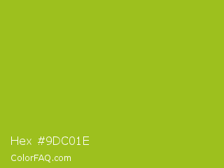 Hex #9dc01e Color is a normal lime color and the nearest color is Acid Green #b0bf1a. Hex code #9dc01e and RGB value is rgb(157,192,30). In RGB color space, this color is composed of 62% red, 75% green, 12% blue, In CMYK color space, this color is composed of 18% cyan, 0% magenta, 84% yellow , 25% black , In HSL color space, this color has a hue angle of 73° , 73% saturation and 44% lightness.