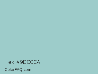 Hex #9dccca Color is a light cyan color and the nearest color is Sinbad #9fd7d3. Hex code #9dccca and RGB value is rgb(157,204,202). In RGB color space, this color is composed of 62% red, 80% green, 79% blue, In CMYK color space, this color is composed of 23% cyan, 0% magenta, 1% yellow , 20% black , In HSL color space, this color has a hue angle of 177° , 32% saturation and 71% lightness.