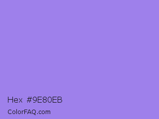 Hex #9e80eb Color is a light indigo color and the nearest color is Medium Purple #9370db. Hex code #9e80eb and RGB value is rgb(158,128,235). In RGB color space, this color is composed of 62% red, 50% green, 92% blue, In CMYK color space, this color is composed of 33% cyan, 46% magenta, 0% yellow , 8% black , In HSL color space, this color has a hue angle of 257° , 73% saturation and 71% lightness.