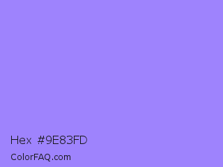Hex #9e83fd Color is a light indigo color and the nearest color is Dull Lavender #a899e6. Hex code #9e83fd and RGB value is rgb(158,131,253). In RGB color space, this color is composed of 62% red, 51% green, 99% blue, In CMYK color space, this color is composed of 38% cyan, 48% magenta, 0% yellow , 1% black , In HSL color space, this color has a hue angle of 253° , 97% saturation and 75% lightness.