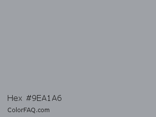 Hex #9ea1a6 Color is a light blue color and the nearest color is Quick Silver #a6a6a6. Hex code #9ea1a6 and RGB value is rgb(158,161,166). In RGB color space, this color is composed of 62% red, 63% green, 65% blue, In CMYK color space, this color is composed of 5% cyan, 3% magenta, 0% yellow , 35% black , In HSL color space, this color has a hue angle of 218° , 4% saturation and 64% lightness.