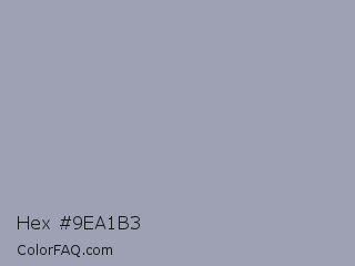Hex #9ea1b3 Color is a light blue color and the nearest color is Santas Gray #9fa0b1. Hex code #9ea1b3 and RGB value is rgb(158,161,179). In RGB color space, this color is composed of 62% red, 63% green, 70% blue, In CMYK color space, this color is composed of 12% cyan, 10% magenta, 0% yellow , 30% black , In HSL color space, this color has a hue angle of 231° , 12% saturation and 66% lightness.