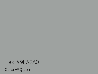 Hex #9ea2a0 Color is a light green color and the nearest color is Star Dust #9f9f9c. Hex code #9ea2a0 and RGB value is rgb(158,162,160). In RGB color space, this color is composed of 62% red, 64% green, 63% blue, In CMYK color space, this color is composed of 2% cyan, 0% magenta, 1% yellow , 36% black , In HSL color space, this color has a hue angle of 150° , 2% saturation and 63% lightness.