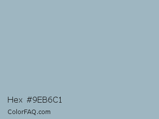 Hex #9eb6c1 Color is a light blue color and the nearest color is Cadet Blue #a9b2c3. Hex code #9eb6c1 and RGB value is rgb(158,182,193). In RGB color space, this color is composed of 62% red, 71% green, 76% blue, In CMYK color space, this color is composed of 18% cyan, 6% magenta, 0% yellow , 24% black , In HSL color space, this color has a hue angle of 199° , 22% saturation and 69% lightness.
