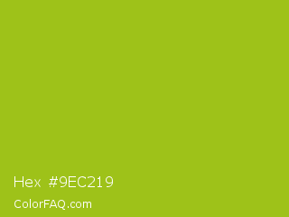Hex #9ec219 Color is a normal lime color and the nearest color is Citrus #a1c50a. Hex code #9ec219 and RGB value is rgb(158,194,25). In RGB color space, this color is composed of 62% red, 76% green, 10% blue, In CMYK color space, this color is composed of 19% cyan, 0% magenta, 87% yellow , 24% black , In HSL color space, this color has a hue angle of 73° , 77% saturation and 43% lightness.