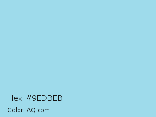 Hex #9edbeb Color is a light cyan color and the nearest color is Non Photo Blue #a4dded. Hex code #9edbeb and RGB value is rgb(158,219,235). In RGB color space, this color is composed of 62% red, 86% green, 92% blue, In CMYK color space, this color is composed of 33% cyan, 7% magenta, 0% yellow , 8% black , In HSL color space, this color has a hue angle of 192° , 66% saturation and 77% lightness.