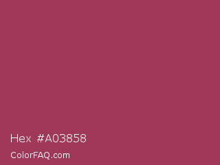Hex #a03858 Color is a normal rose color and the nearest color is Night Shadz #aa375a. Hex code #a03858 and RGB value is rgb(160,56,88). In RGB color space, this color is composed of 63% red, 22% green, 35% blue, In CMYK color space, this color is composed of 0% cyan, 65% magenta, 45% yellow , 37% black , In HSL color space, this color has a hue angle of 342° , 48% saturation and 42% lightness.