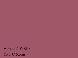 Hex #a05868 Color is a normal red color and the nearest color is Rose Dust #9e5e6f. Hex code #a05868 and RGB value is rgb(160,88,104). In RGB color space, this color is composed of 63% red, 35% green, 41% blue, In CMYK color space, this color is composed of 0% cyan, 45% magenta, 35% yellow , 37% black , In HSL color space, this color has a hue angle of 347° , 29% saturation and 49% lightness.