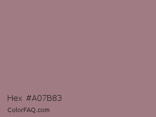 Hex #a07b83 Color is a normal red color and the nearest color is Pharlap #a3807b. Hex code #a07b83 and RGB value is rgb(160,123,131). In RGB color space, this color is composed of 63% red, 48% green, 51% blue, In CMYK color space, this color is composed of 0% cyan, 23% magenta, 18% yellow , 37% black , In HSL color space, this color has a hue angle of 347° , 16% saturation and 55% lightness.