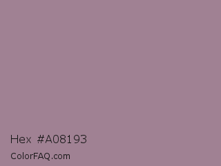 Hex #a08193 Color is a normal magenta color and the nearest color is Mountbatten Pink #997a8d. Hex code #a08193 and RGB value is rgb(160,129,147). In RGB color space, this color is composed of 63% red, 51% green, 58% blue, In CMYK color space, this color is composed of 0% cyan, 19% magenta, 8% yellow , 37% black , In HSL color space, this color has a hue angle of 325° , 14% saturation and 57% lightness.