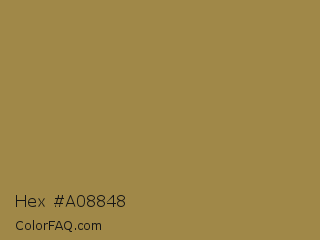 Hex #a08848 Color is a normal orange color and the nearest color is Driftwood #af8751. Hex code #a08848 and RGB value is rgb(160,136,72). In RGB color space, this color is composed of 63% red, 53% green, 28% blue, In CMYK color space, this color is composed of 0% cyan, 15% magenta, 55% yellow , 37% black , In HSL color space, this color has a hue angle of 44° , 38% saturation and 45% lightness.