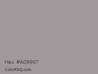 Hex #a09997 Color is a light red color and the nearest color is Star Dust #9f9f9c. Hex code #a09997 and RGB value is rgb(160,153,151). In RGB color space, this color is composed of 63% red, 60% green, 59% blue, In CMYK color space, this color is composed of 0% cyan, 4% magenta, 6% yellow , 37% black , In HSL color space, this color has a hue angle of 13° , 5% saturation and 61% lightness.