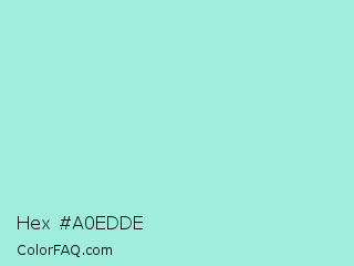Hex #a0edde Color is a light cyan color and the nearest color is Water Leaf #a1e9de. Hex code #a0edde and RGB value is rgb(160,237,222). In RGB color space, this color is composed of 63% red, 93% green, 87% blue, In CMYK color space, this color is composed of 32% cyan, 0% magenta, 6% yellow , 7% black , In HSL color space, this color has a hue angle of 168° , 68% saturation and 78% lightness.