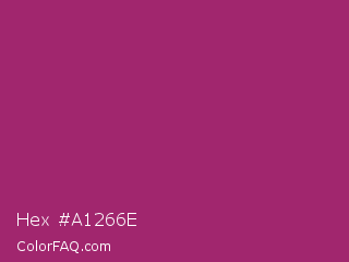 Hex #a1266e Color is a normal magenta color and the nearest color is Amaranth Deep Purple #9f2b68. Hex code #a1266e and RGB value is rgb(161,38,110). In RGB color space, this color is composed of 63% red, 15% green, 43% blue, In CMYK color space, this color is composed of 0% cyan, 76% magenta, 32% yellow , 37% black , In HSL color space, this color has a hue angle of 325° , 62% saturation and 39% lightness.