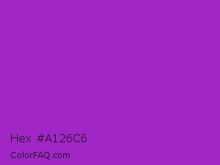 Hex #a126c6 Color is a normal purple color and the nearest color is Dark Orchid #9932cc. Hex code #a126c6 and RGB value is rgb(161,38,198). In RGB color space, this color is composed of 63% red, 15% green, 78% blue, In CMYK color space, this color is composed of 19% cyan, 81% magenta, 0% yellow , 22% black , In HSL color space, this color has a hue angle of 286° , 68% saturation and 46% lightness.