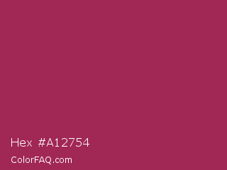 Hex #a12754 Color is a normal rose color and the nearest color is Amaranth Purple #ab274f. Hex code #a12754 and RGB value is rgb(161,39,84). In RGB color space, this color is composed of 63% red, 15% green, 33% blue, In CMYK color space, this color is composed of 0% cyan, 76% magenta, 48% yellow , 37% black , In HSL color space, this color has a hue angle of 338° , 61% saturation and 39% lightness.