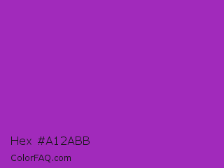 Hex #a12abb Color is a normal purple color and the nearest color is Dark Orchid #9932cc. Hex code #a12abb and RGB value is rgb(161,42,187). In RGB color space, this color is composed of 63% red, 16% green, 73% blue, In CMYK color space, this color is composed of 14% cyan, 78% magenta, 0% yellow , 27% black , In HSL color space, this color has a hue angle of 289° , 63% saturation and 45% lightness.
