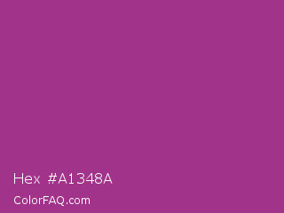 Hex #a1348a Color is a normal magenta color and the nearest color is Maximum Red Purple #a63a79. Hex code #a1348a and RGB value is rgb(161,52,138). In RGB color space, this color is composed of 63% red, 20% green, 54% blue, In CMYK color space, this color is composed of 0% cyan, 68% magenta, 14% yellow , 37% black , In HSL color space, this color has a hue angle of 313° , 51% saturation and 42% lightness.