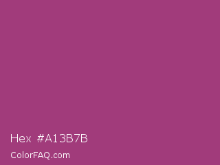 Hex #a13b7b Color is a normal magenta color and the nearest color is Maximum Red Purple #a63a79. Hex code #a13b7b and RGB value is rgb(161,59,123). In RGB color space, this color is composed of 63% red, 23% green, 48% blue, In CMYK color space, this color is composed of 0% cyan, 63% magenta, 24% yellow , 37% black , In HSL color space, this color has a hue angle of 322° , 46% saturation and 43% lightness.