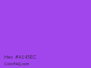 Hex #a145ec Color is a normal purple color and the nearest color is Navy Purple #9457eb. Hex code #a145ec and RGB value is rgb(161,69,236). In RGB color space, this color is composed of 63% red, 27% green, 93% blue, In CMYK color space, this color is composed of 32% cyan, 71% magenta, 0% yellow , 7% black , In HSL color space, this color has a hue angle of 273° , 81% saturation and 60% lightness.