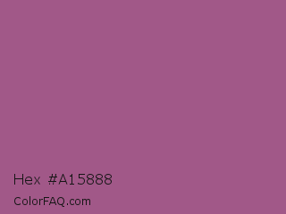 Hex #a15888 Color is a normal magenta color and the nearest color is Strikemaster #956387. Hex code #a15888 and RGB value is rgb(161,88,136). In RGB color space, this color is composed of 63% red, 35% green, 53% blue, In CMYK color space, this color is composed of 0% cyan, 45% magenta, 16% yellow , 37% black , In HSL color space, this color has a hue angle of 321° , 29% saturation and 49% lightness.
