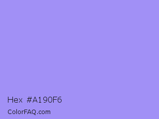 Hex #a190f6 Color is a light indigo color and the nearest color is Dull Lavender #a899e6. Hex code #a190f6 and RGB value is rgb(161,144,246). In RGB color space, this color is composed of 63% red, 56% green, 96% blue, In CMYK color space, this color is composed of 35% cyan, 41% magenta, 0% yellow , 4% black , In HSL color space, this color has a hue angle of 250° , 85% saturation and 76% lightness.