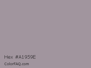 Hex #a1959e Color is a light magenta color and the nearest color is Dusty Gray #a8989b. Hex code #a1959e and RGB value is rgb(161,149,158). In RGB color space, this color is composed of 63% red, 58% green, 62% blue, In CMYK color space, this color is composed of 0% cyan, 7% magenta, 2% yellow , 37% black , In HSL color space, this color has a hue angle of 315° , 6% saturation and 61% lightness.