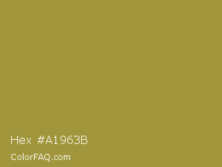 Hex #a1963b Color is a normal yellow color and the nearest color is Sycamore #908d39. Hex code #a1963b and RGB value is rgb(161,150,59). In RGB color space, this color is composed of 63% red, 59% green, 23% blue, In CMYK color space, this color is composed of 0% cyan, 7% magenta, 63% yellow , 37% black , In HSL color space, this color has a hue angle of 54° , 46% saturation and 43% lightness.