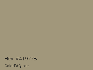 Hex #a1977b Color is a normal orange color and the nearest color is Donkey Brown #a69279. Hex code #a1977b and RGB value is rgb(161,151,123). In RGB color space, this color is composed of 63% red, 59% green, 48% blue, In CMYK color space, this color is composed of 0% cyan, 6% magenta, 24% yellow , 37% black , In HSL color space, this color has a hue angle of 44° , 17% saturation and 56% lightness.