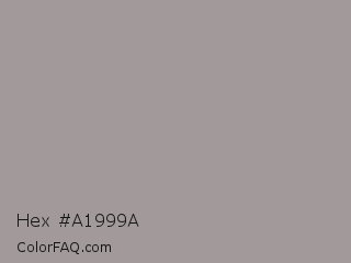 Hex #a1999a Color is a light red color and the nearest color is Star Dust #9f9f9c. Hex code #a1999a and RGB value is rgb(161,153,154). In RGB color space, this color is composed of 63% red, 60% green, 60% blue, In CMYK color space, this color is composed of 0% cyan, 5% magenta, 4% yellow , 37% black , In HSL color space, this color has a hue angle of 353° , 4% saturation and 62% lightness.