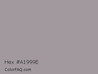 Hex #a1999e Color is a light magenta color and the nearest color is Star Dust #9f9f9c. Hex code #a1999e and RGB value is rgb(161,153,158). In RGB color space, this color is composed of 63% red, 60% green, 62% blue, In CMYK color space, this color is composed of 0% cyan, 5% magenta, 2% yellow , 37% black , In HSL color space, this color has a hue angle of 323° , 4% saturation and 62% lightness.