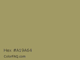 Hex #a19a64 Color is a normal yellow color and the nearest color is Teak #b19461. Hex code #a19a64 and RGB value is rgb(161,154,100). In RGB color space, this color is composed of 63% red, 60% green, 39% blue, In CMYK color space, this color is composed of 0% cyan, 4% magenta, 38% yellow , 37% black , In HSL color space, this color has a hue angle of 53° , 24% saturation and 51% lightness.
