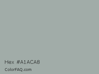 Hex #a1aca8 Color is a light green color and the nearest color is Edward #a2aeab. Hex code #a1aca8 and RGB value is rgb(161,172,168). In RGB color space, this color is composed of 63% red, 67% green, 66% blue, In CMYK color space, this color is composed of 6% cyan, 0% magenta, 2% yellow , 33% black , In HSL color space, this color has a hue angle of 158° , 6% saturation and 65% lightness.