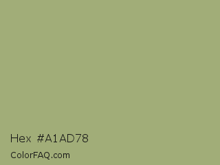 Hex #a1ad78 Color is a normal lime color and the nearest color is Green Smoke #a4af6e. Hex code #a1ad78 and RGB value is rgb(161,173,120). In RGB color space, this color is composed of 63% red, 68% green, 47% blue, In CMYK color space, this color is composed of 7% cyan, 0% magenta, 31% yellow , 32% black , In HSL color space, this color has a hue angle of 74° , 24% saturation and 57% lightness.