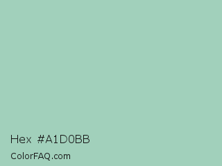 Hex #a1d0bb Color is a light green color and the nearest color is Turquoise Green #a0d6b4. Hex code #a1d0bb and RGB value is rgb(161,208,187). In RGB color space, this color is composed of 63% red, 82% green, 73% blue, In CMYK color space, this color is composed of 23% cyan, 0% magenta, 10% yellow , 18% black , In HSL color space, this color has a hue angle of 153° , 33% saturation and 72% lightness.