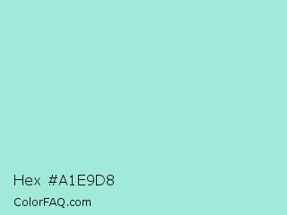 Hex #a1e9d8 Color is a light cyan color and the nearest color is Water Leaf #a1e9de. Hex code #a1e9d8 and RGB value is rgb(161,233,216). In RGB color space, this color is composed of 63% red, 91% green, 85% blue, In CMYK color space, this color is composed of 31% cyan, 0% magenta, 7% yellow , 9% black , In HSL color space, this color has a hue angle of 166° , 62% saturation and 77% lightness.