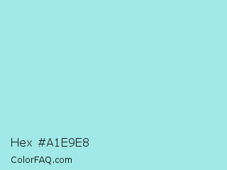 Hex #a1e9e8 Color is a light cyan color and the nearest color is Blizzard Blue Crayola #a3e3ed. Hex code #a1e9e8 and RGB value is rgb(161,233,232). In RGB color space, this color is composed of 63% red, 91% green, 91% blue, In CMYK color space, this color is composed of 31% cyan, 0% magenta, 0% yellow , 9% black , In HSL color space, this color has a hue angle of 179° , 62% saturation and 77% lightness.