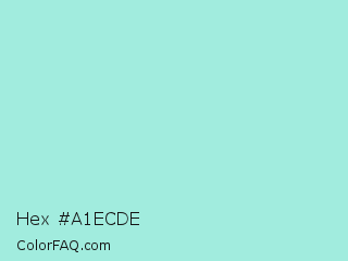 Hex #a1ecde Color is a light cyan color and the nearest color is Water Leaf #a1e9de. Hex code #a1ecde and RGB value is rgb(161,236,222). In RGB color space, this color is composed of 63% red, 93% green, 87% blue, In CMYK color space, this color is composed of 32% cyan, 0% magenta, 6% yellow , 7% black , In HSL color space, this color has a hue angle of 169° , 66% saturation and 78% lightness.