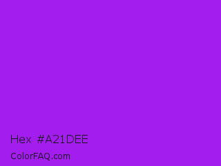Hex #a21dee Color is a normal purple color and the nearest color is Veronica #a020f0. Hex code #a21dee and RGB value is rgb(162,29,238). In RGB color space, this color is composed of 64% red, 11% green, 93% blue, In CMYK color space, this color is composed of 32% cyan, 88% magenta, 0% yellow , 7% black , In HSL color space, this color has a hue angle of 278° , 86% saturation and 52% lightness.