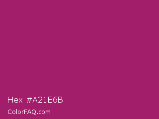 Hex #a21e6b Color is a normal magenta color and the nearest color is Amaranth Deep Purple #9f2b68. Hex code #a21e6b and RGB value is rgb(162,30,107). In RGB color space, this color is composed of 64% red, 12% green, 42% blue, In CMYK color space, this color is composed of 0% cyan, 81% magenta, 34% yellow , 36% black , In HSL color space, this color has a hue angle of 325° , 69% saturation and 38% lightness.